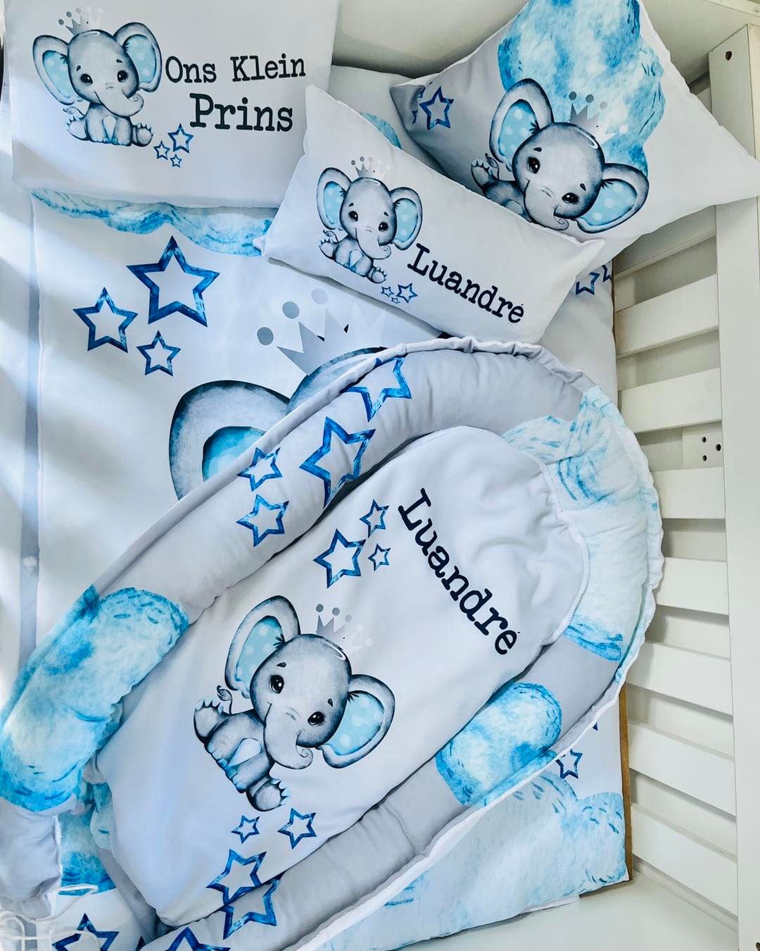 Blue Elephant personalized baby bedding