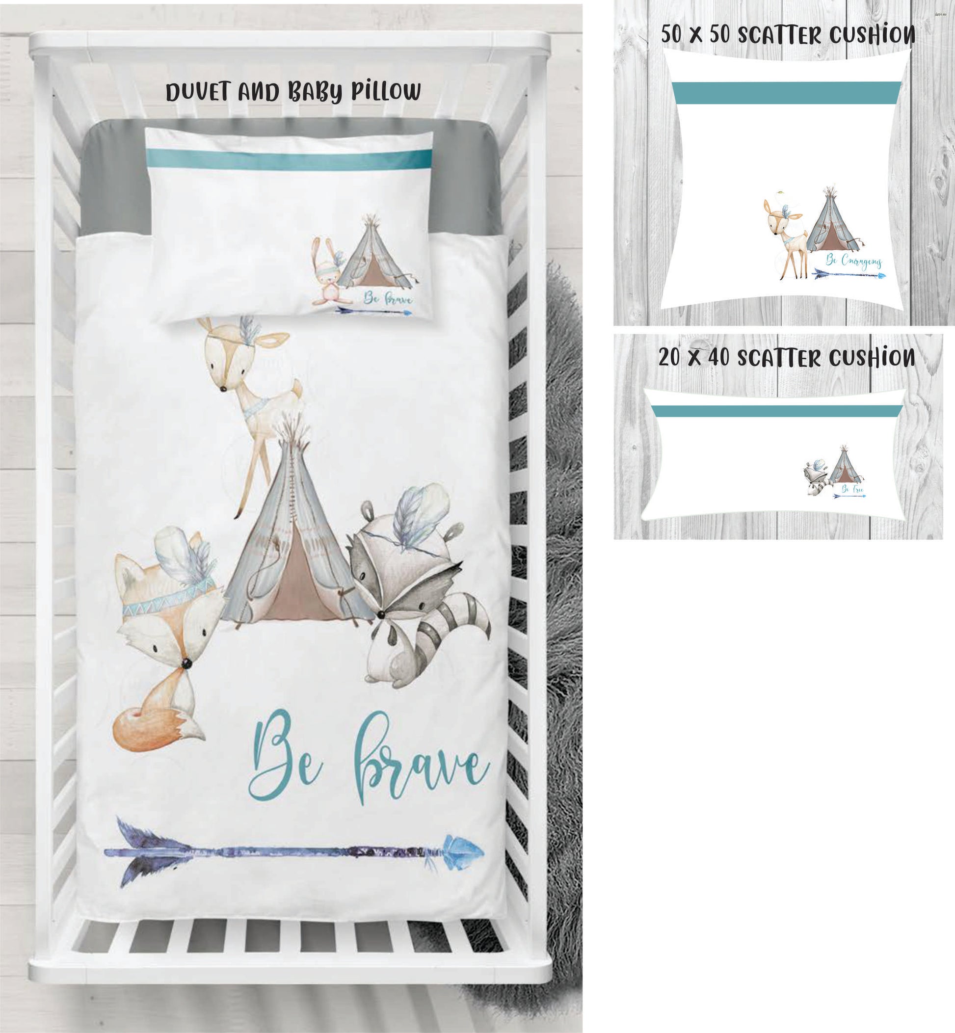 Combo 2: Duvet cover and inner, Small baby pillow, 2x Scatter cushion all with inners included.