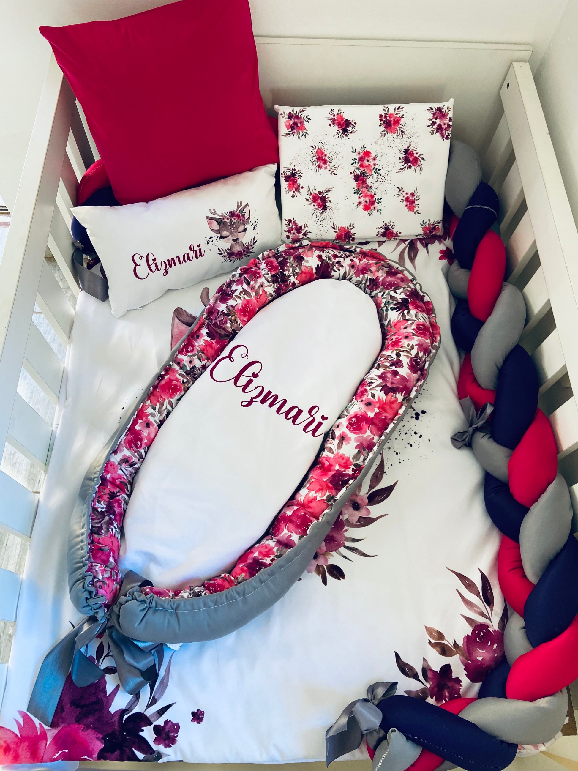 Combo 2: Duvet cover and inner, Small baby pillow, Name pillow, Scatter cushion all with inners included.